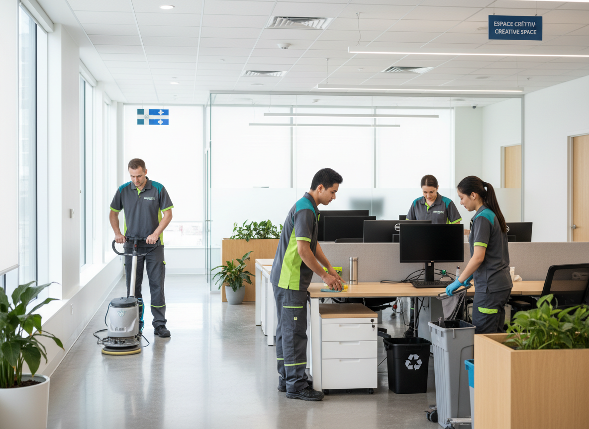 Bureaux, commerces, usines, garderies, cliniques à Québec & Lévis. Équipe stable, urgence 24/7, garantie satisfaction 90 jours.